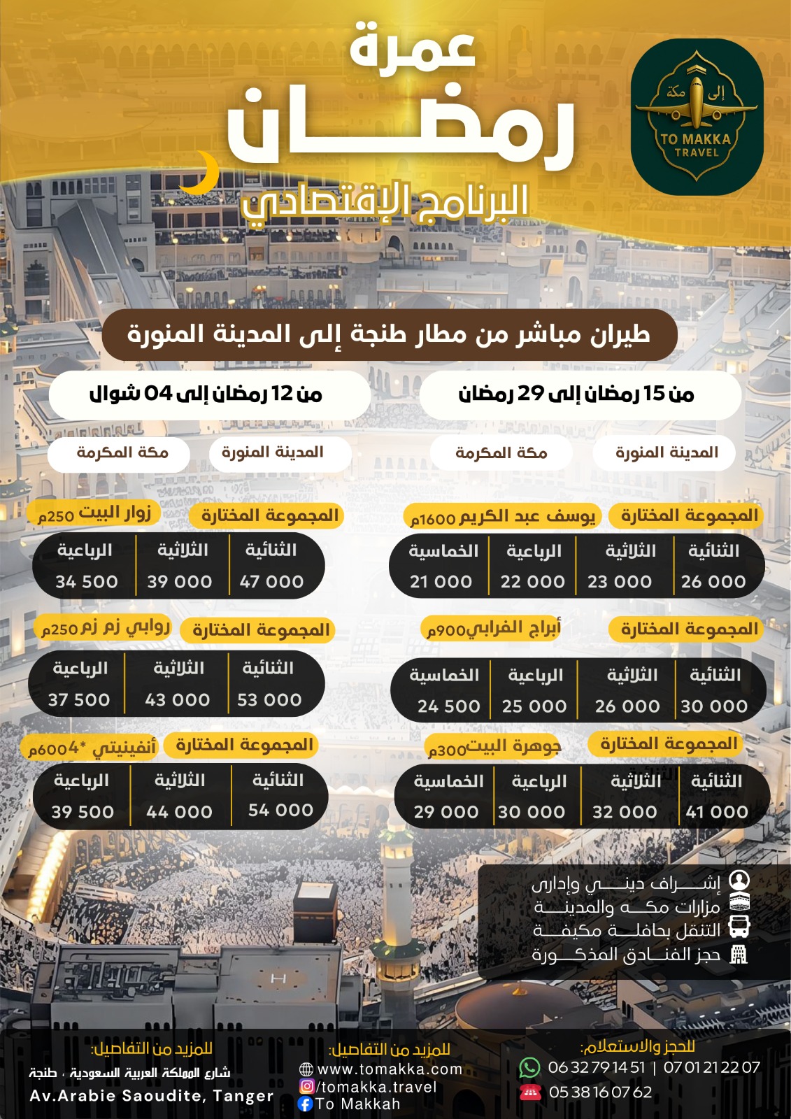 DetailsUmrah program for the last days of Ramadan from March 5 to March 20, departing from Tangier to Madin...